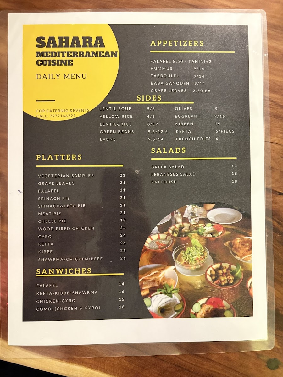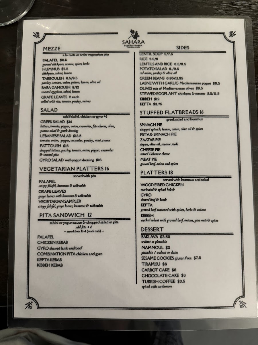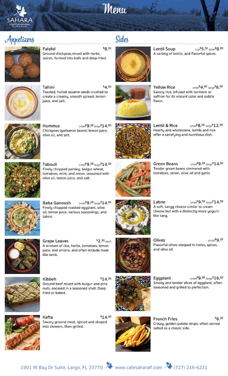 Ground garbanzo beans, parsley, onions, spices with lettuce, tomatoes, pickles, and tahini sauce.